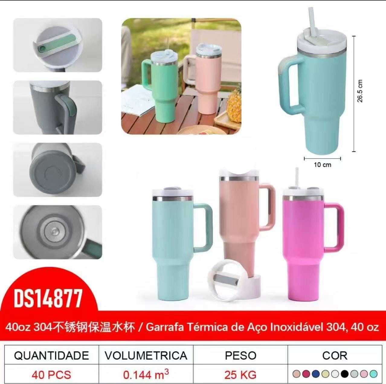 Copo Térmico 1200ml com Alça e Canudo 40oz
