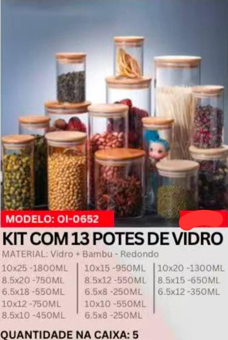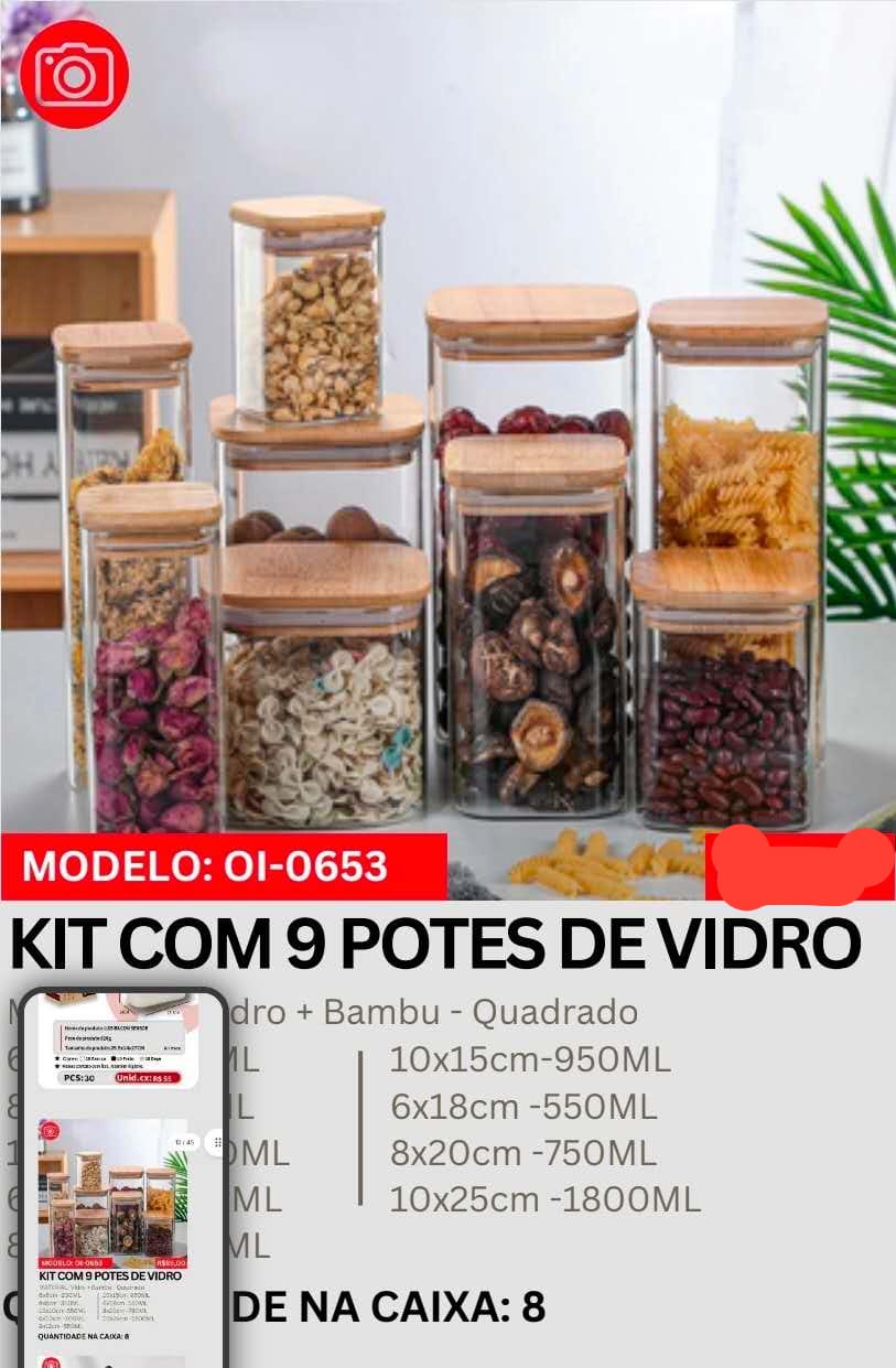 CONJUNTO DE POTES DE VIDRO 8 PEÇAS OI0651