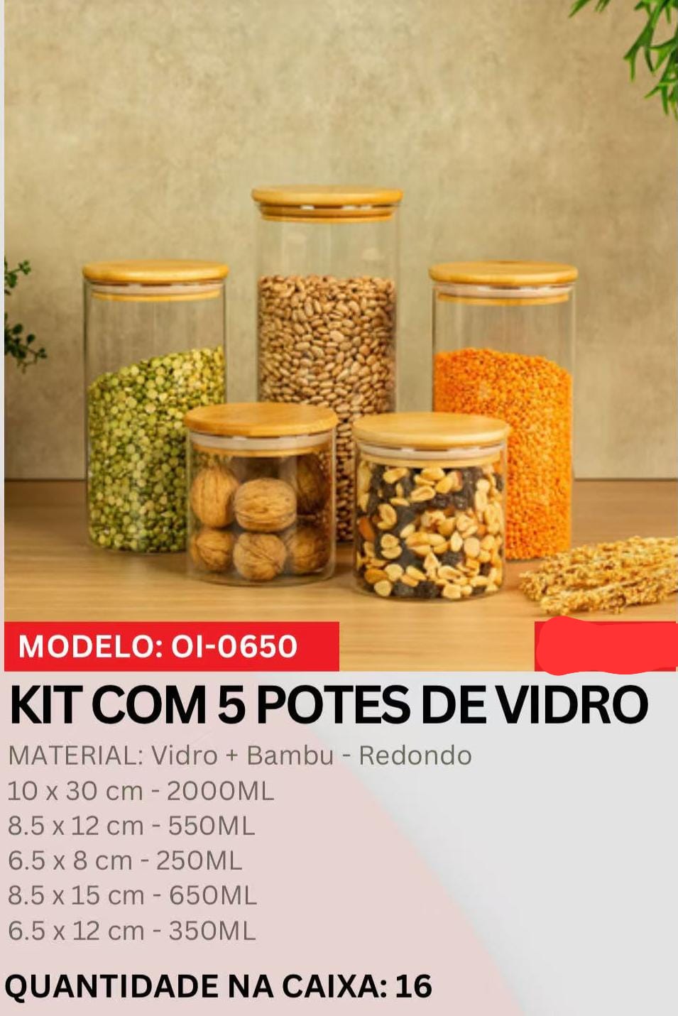 CONJUNTO DE POTES DE VIDRO 5 PEÇAS OI0650